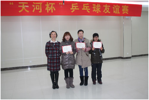 2013年2月首屆“天河杯”乒乓球比賽圓滿結(jié)束,此項(xiàng)活動(dòng)不僅豐富了廣大員工的業(yè)余生活、提高了員工的身體素質(zhì),而且增強(qiáng)了企業(yè)的凝聚力、員工的歸屬感。 本次比賽女子組邸偉娜奪冠,男子組由王紅軍奪冠。